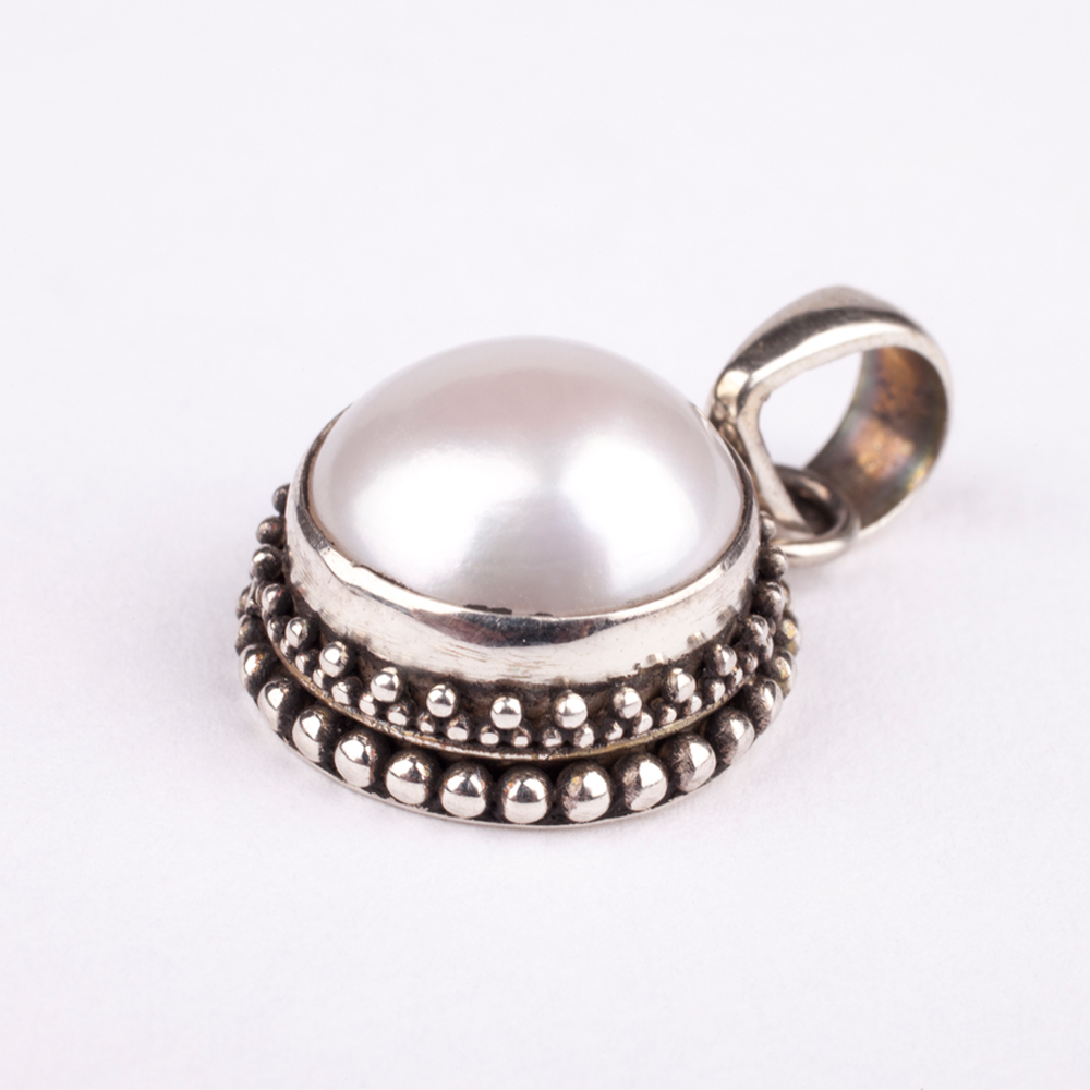 Helmiäiskaulakoru. Cincin design. Hopeaa ja helmiäistä.